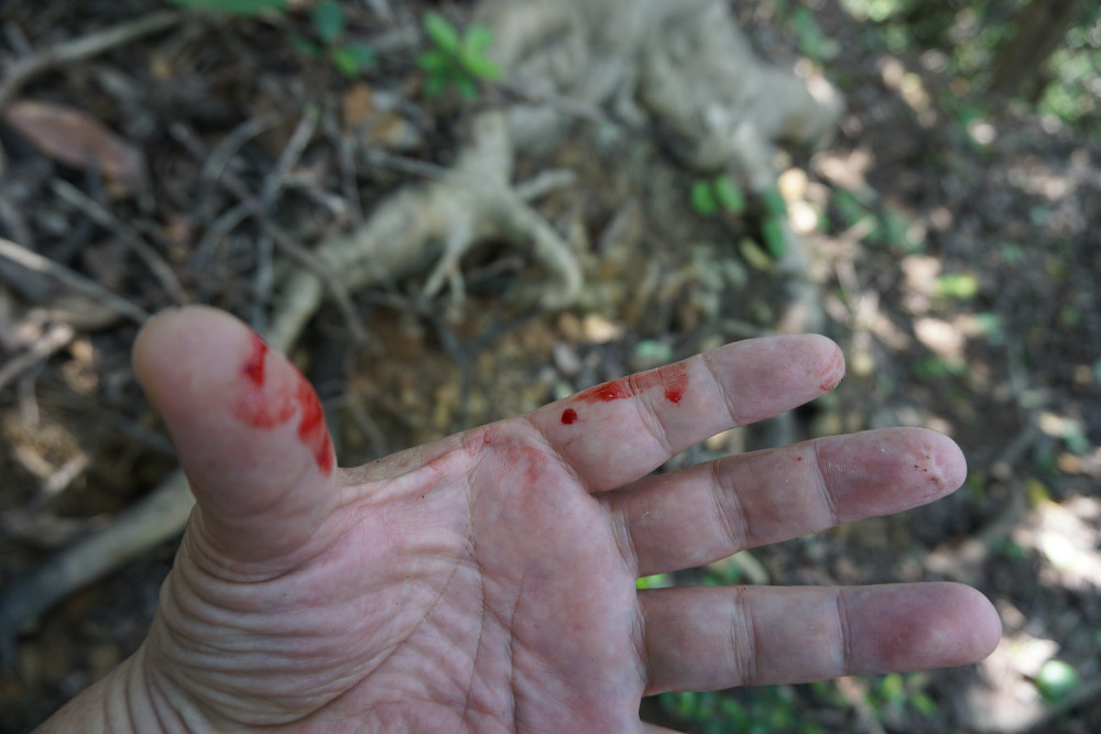 このように手が血だらけに・・・こういう時に限って軍手を忘れているんだよなあ・・・