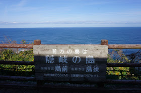 ここから眺めると手前に「地の御前」、はるか海上に「沖の御前」なる島を見ることができる。
